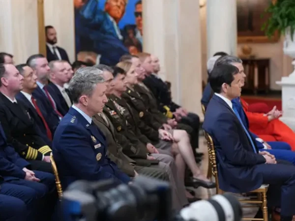 امریکی صدر ڈونلڈ ٹرمپ کے قومی خطاب کے دوران وائٹ ہاؤس کے کراس ہال میں اعلیٰ امریکی عسکری اور سیاسی قیادت بھی موجود رہی۔