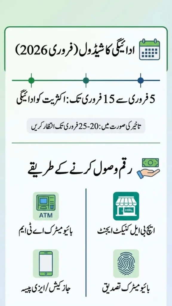 3. JazzCash / EasyPaisa – In many areas, payment is now directly transferred to your mobile wallet (check 8171 SMS for confirmation).