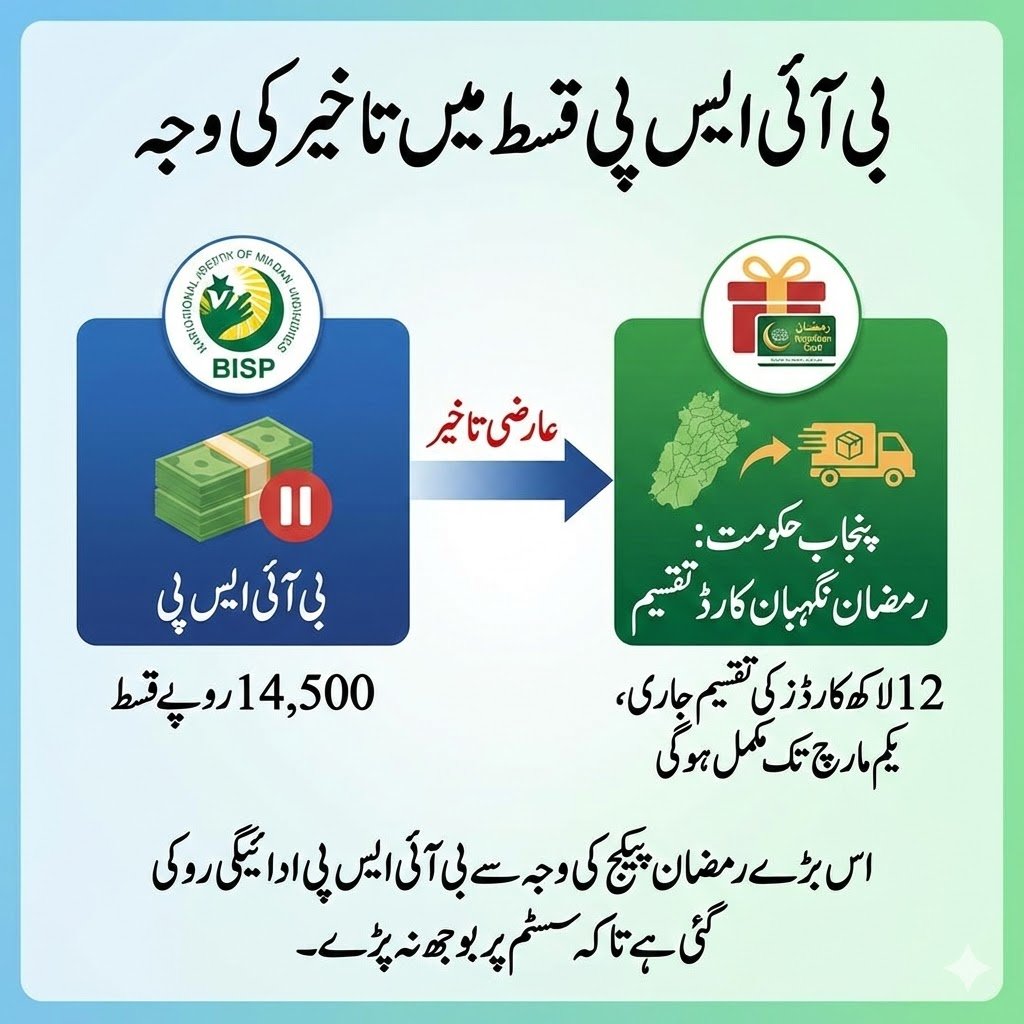 - Because of this huge Ramzan package work, the BISP Rs 14,500 payment has been temporarily paused so the system can handle both programs smoothly.