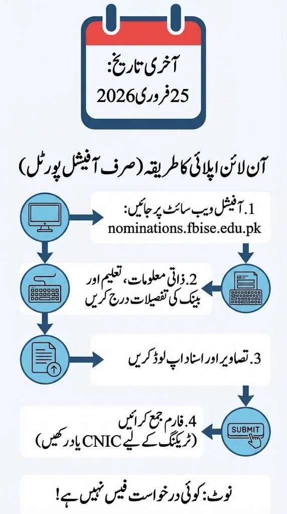 Federal Board of Intermediate and Secondary Education (FBISE), Islamabad has opened applications for Invigilator (supervisory staff) duties in SSC (Matric) and HSSC (Intermediate) Annual Examinations 2026.