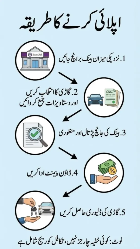 (Disclaimer: Information based on latest Meezan Bank Roshan Apni Car scheme details as of January 19, 2026. Exact terms, profit rate, down payment, and eligibility may vary – always confirm with nearest Meezan Bank branch or official website. This is an informational guide only.)