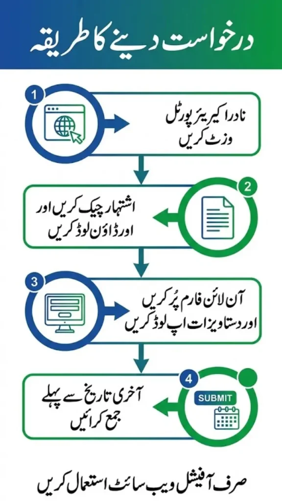 - Official Portal: Visit NADRA careers page – https://careers.nadra.gov.pk/ or https://www.nadra.gov.pk/careers/