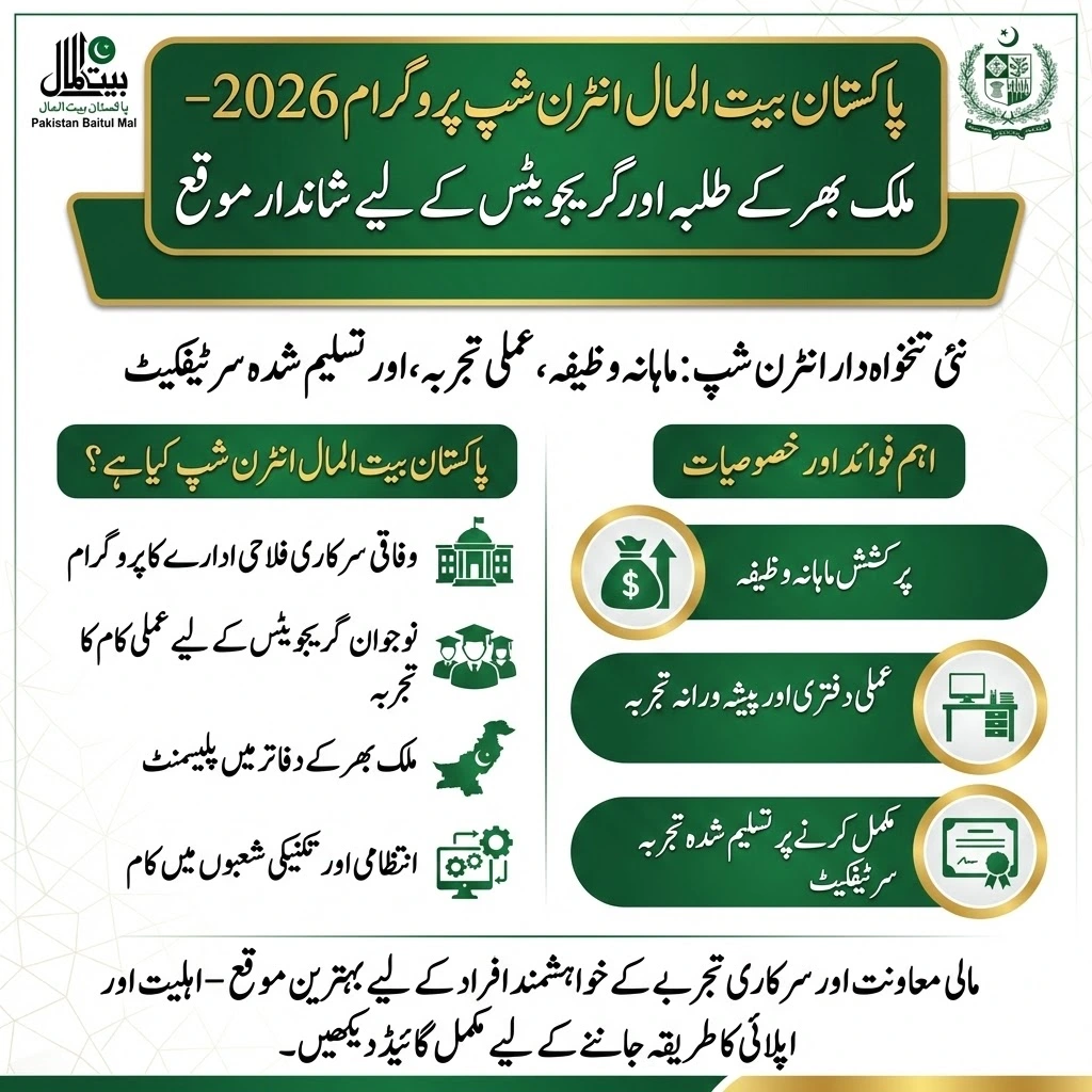 The Pakistan Baitul Mal Paid Internship Program 2026 is a strong opportunity for graduates who want government sector experience along with a good monthly stipend. If you meet the education and age criteria, apply online before the deadline and make sure your documents are complete and accurate.